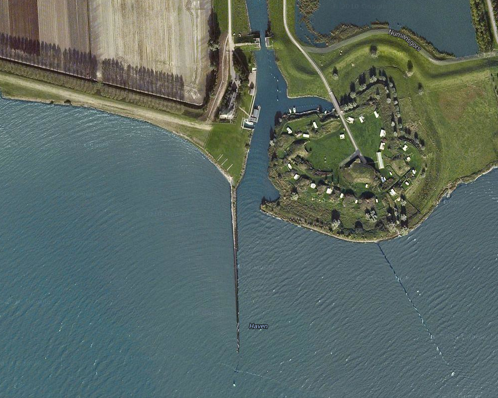 Je vindt Fort Buitensluis bij de ingang van de haven van Numansdorp, die gekenmerkt wordt door de rode boei bij de krib.